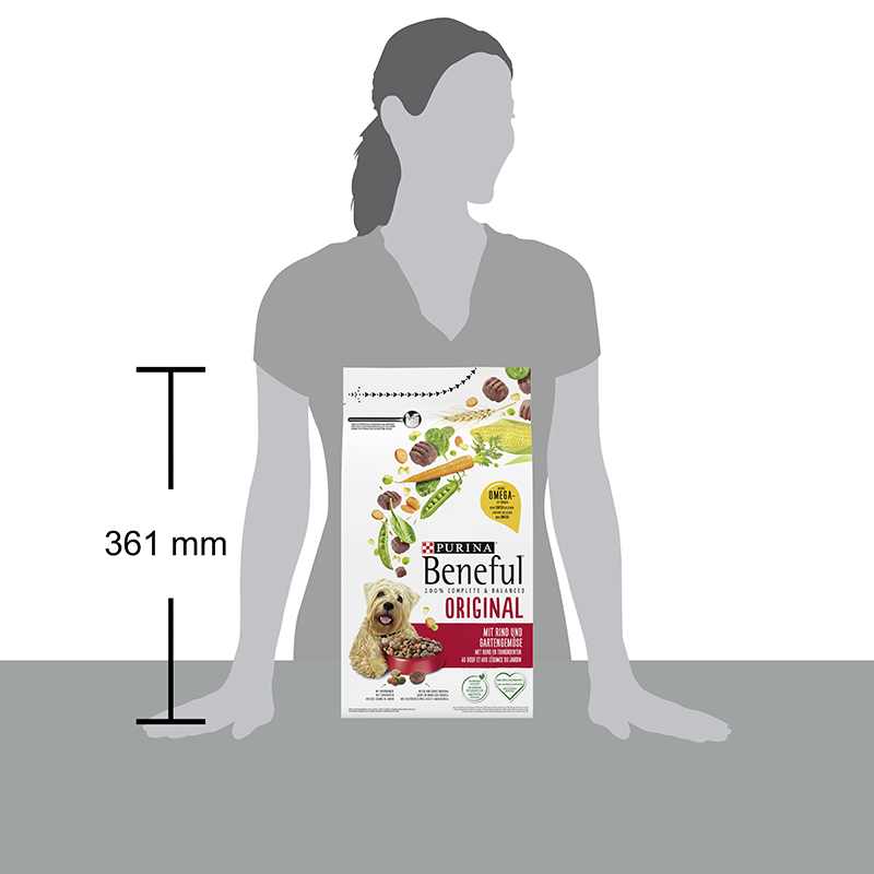 BENEFUL® Original mit Rind & Gartengemüse (1,4 kg) ist ein schmackhaftes Alleinfuttermittel für ausgewachsene Hunde. Die Kombination aus knusprigen Kroketten und weicheren Brocken sorgt für Abwechslung im Napf und macht jede Mahlzeit besonders lecker.